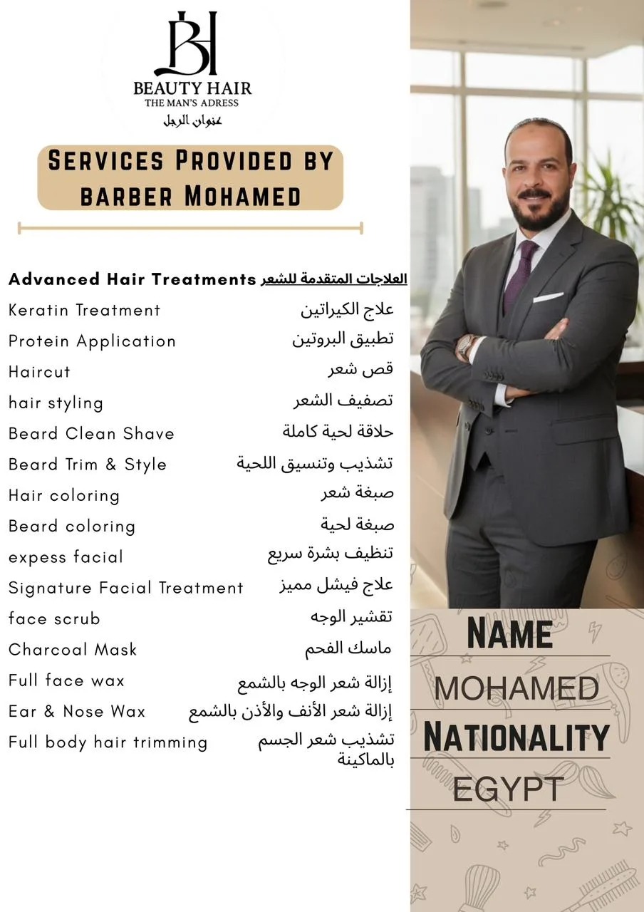 Expert in advanced hair treatments, including keratin, protein applications, and styling. Delivers precise haircuts, smooth beard trims, and professional facial treatments for a polished, confident look every visit.