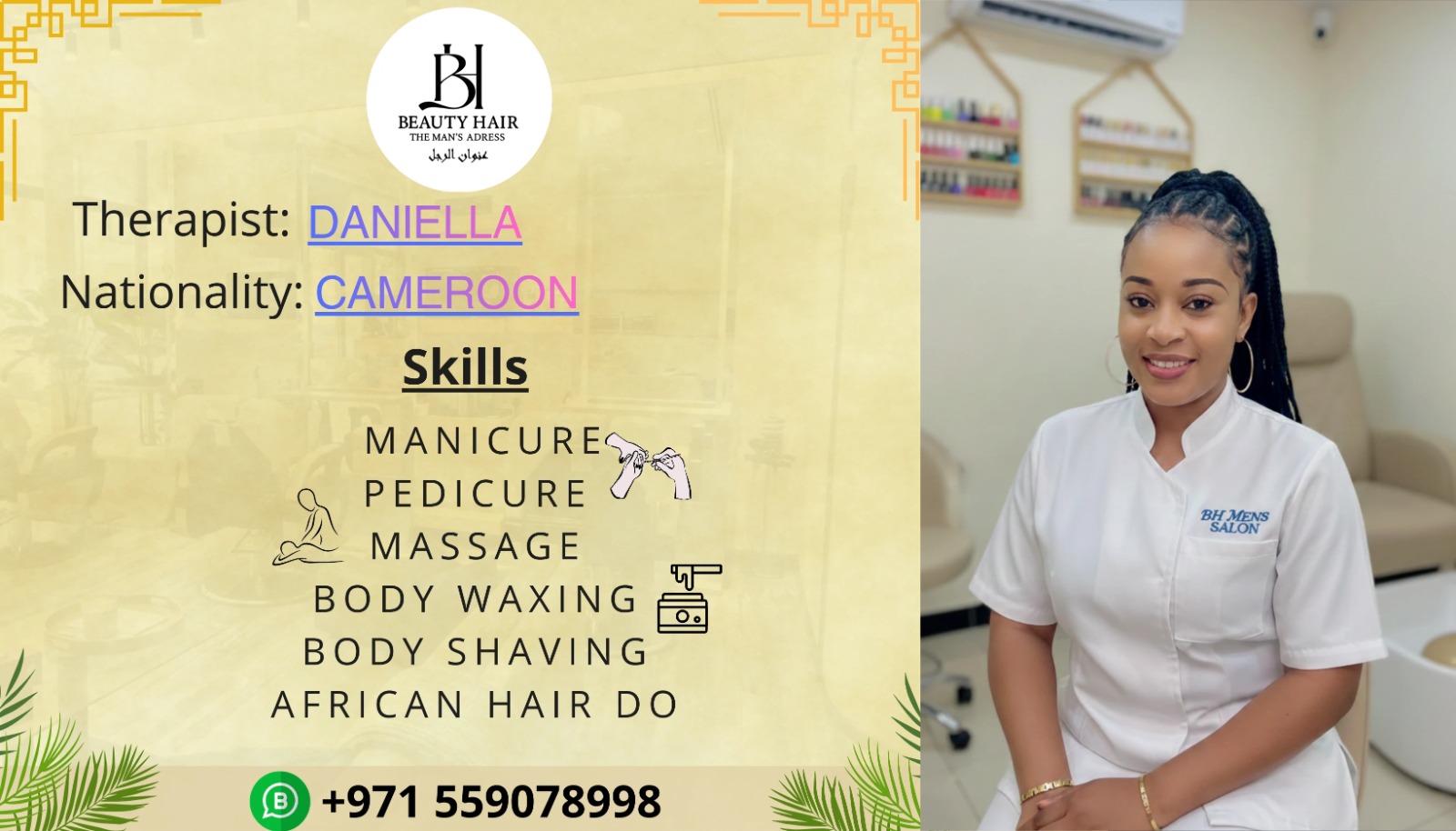 Skilled in manicures, pedicures, facial care, and full-body waxing. Focuses on client comfort while delivering top-notch grooming, skincare, and beauty treatments with consistent precision and care.